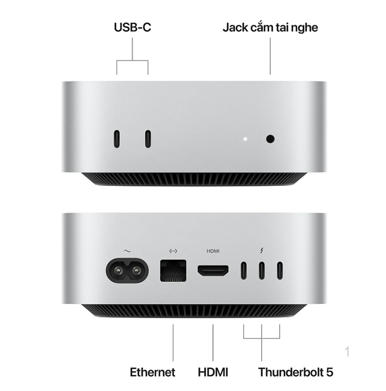 🌐 Cổng Kết Nối Đa ChuẩnVới Chip M4 Pro, Mac mini được trang bị hệ thống cổng kết nối chuyên nghiệp:
