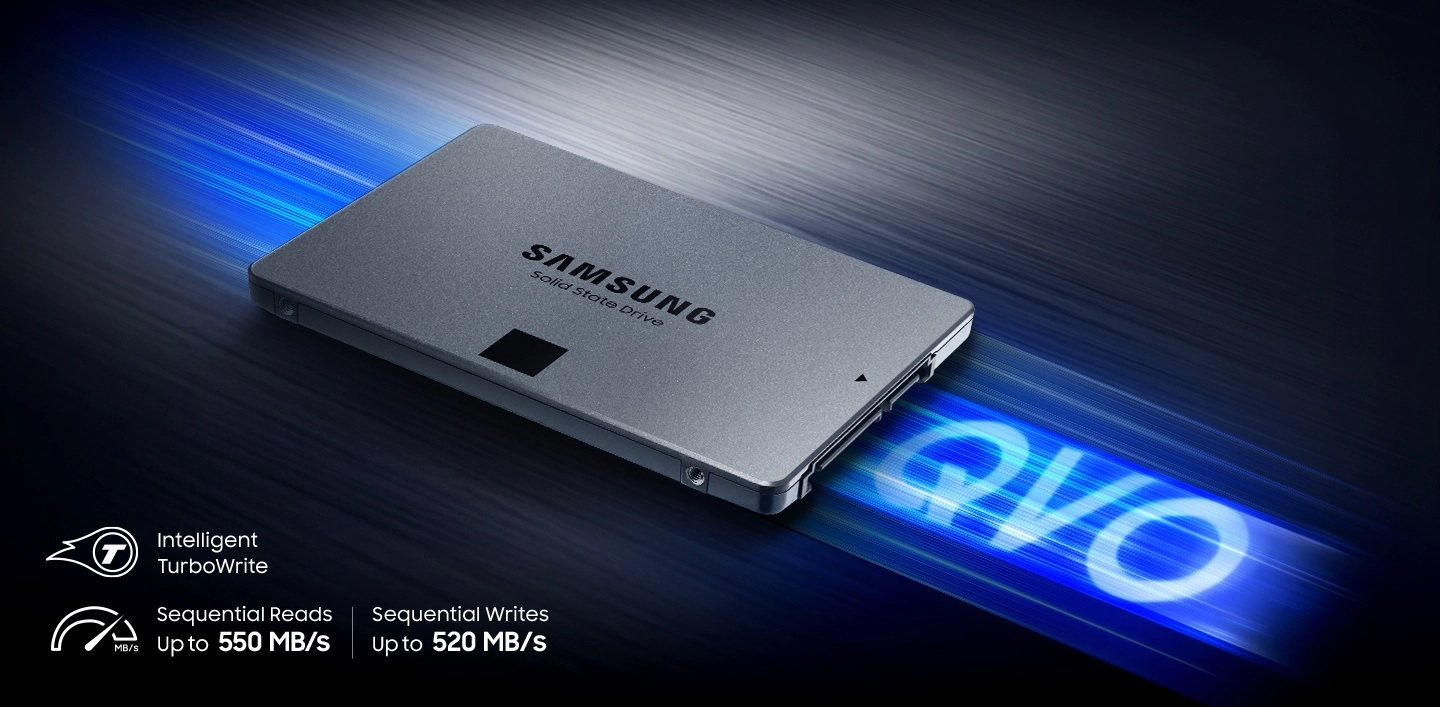 Ổ cứng SSD Samsung 860 QVO được trang bị công nghệ NAND Flash MLC 4bit kết hợp cùng công nghệ Samsung 64-Layer 3D V-NAND của Samsung mang đến cho bạn một sản phẩm có hiệu năng cực cao, dung lượng cực lớn kèm theo giá thành cực tốt. Đây chính là giải pháp mở rộng không gian lưu trữ cực kỳ tối ưu cho hệ thống máy tính của bạn với giá thành không thể tốt hơn.