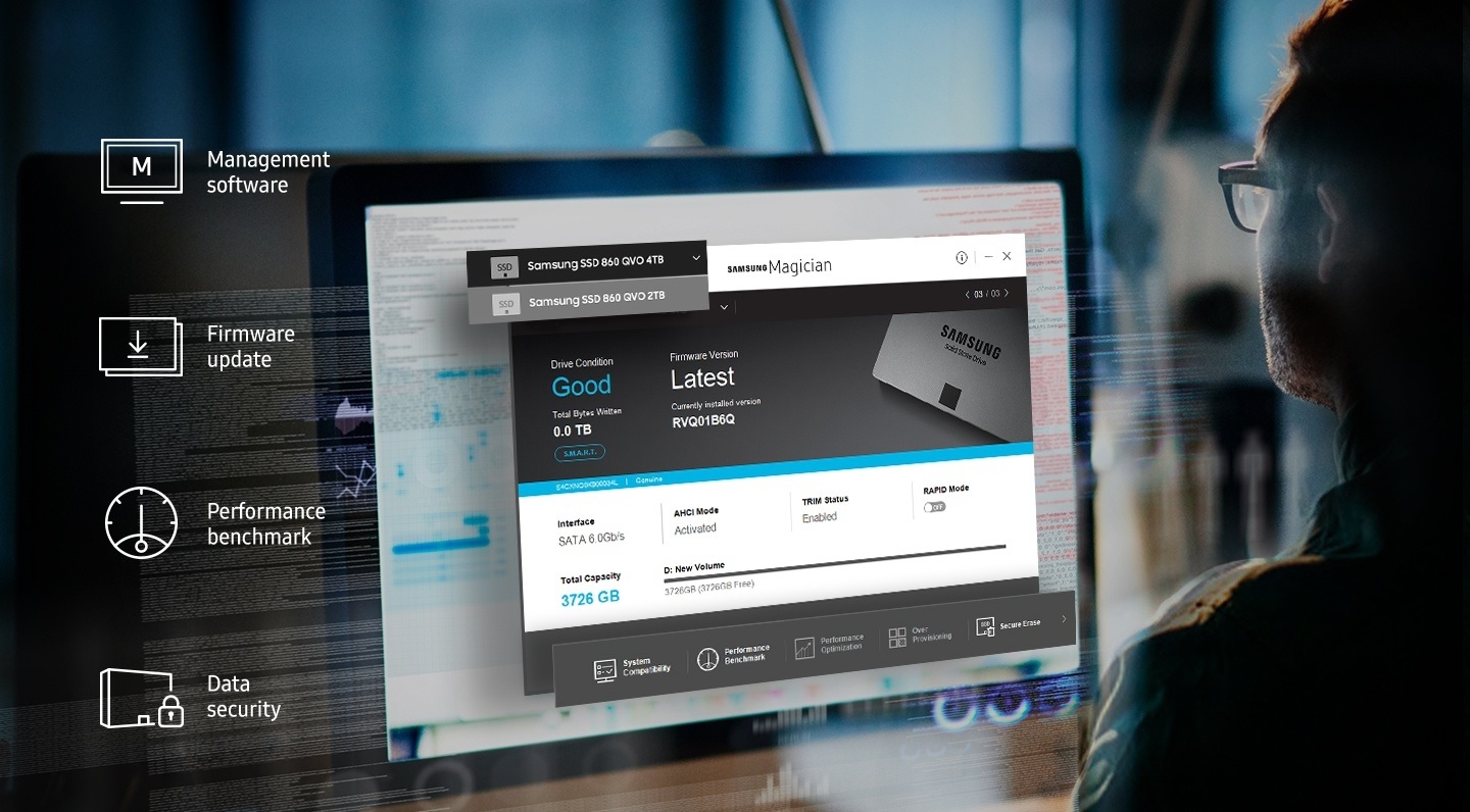 Ổ cứng SSD Samsung 860 QVO được đi kèm phần mềm Samsung Magician cho phép bạn thiết lập, tối ưu hóa và quản lý hệ thống của bạn, tăng tốc cho hiệu suất SSD cực cao.