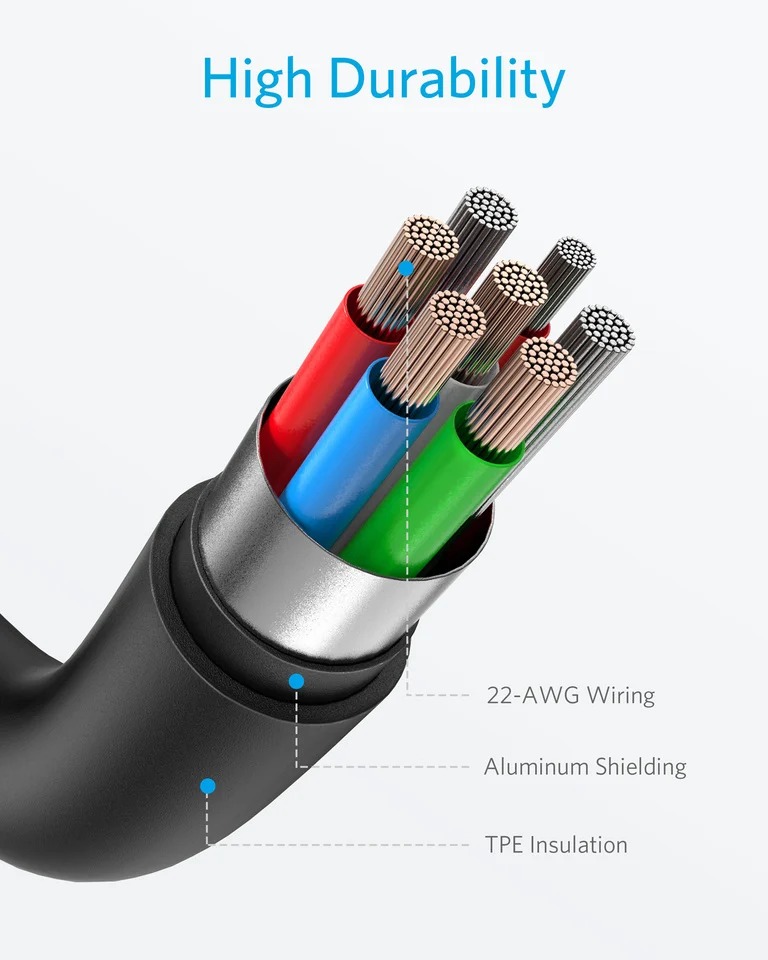 Bền hơn 12 lần so với cáp thông thường. Độ bền đã được phòng thí nghiệm Anker chứng minh với khả năng chịu được hơn 12.000 lần uốn cong.